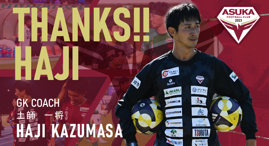 このたび、土師一将 GKコーチが、2025シーズン限りで飛鳥FCを退任することとなりましたので、コメントと合わせてお知らせいたします。