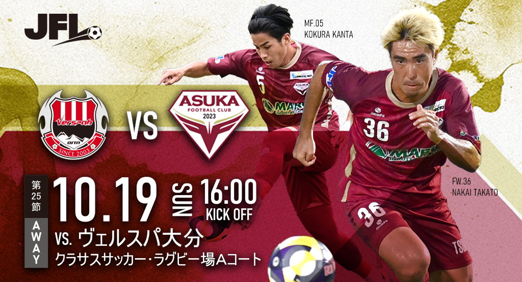 さて、10月19日(日)第27回JFL日本フットボールリーグ第25節アウェイ、ヴェルスパ大分(@クラサA)戦の試合情報を以下にてお知らせいたします。