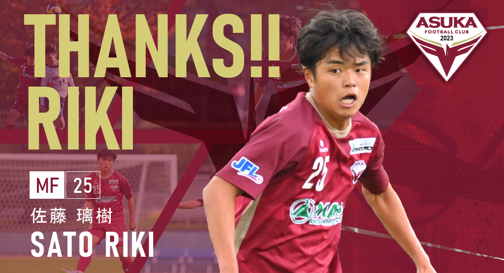 このたび、FC今治(J2)所属より期限付き移籍加入しておりました佐藤璃樹 選手が、期限付き移籍期間満了に伴い、FC今治に復帰することとなりましたので、コメントと合わせてお知らせいたします。