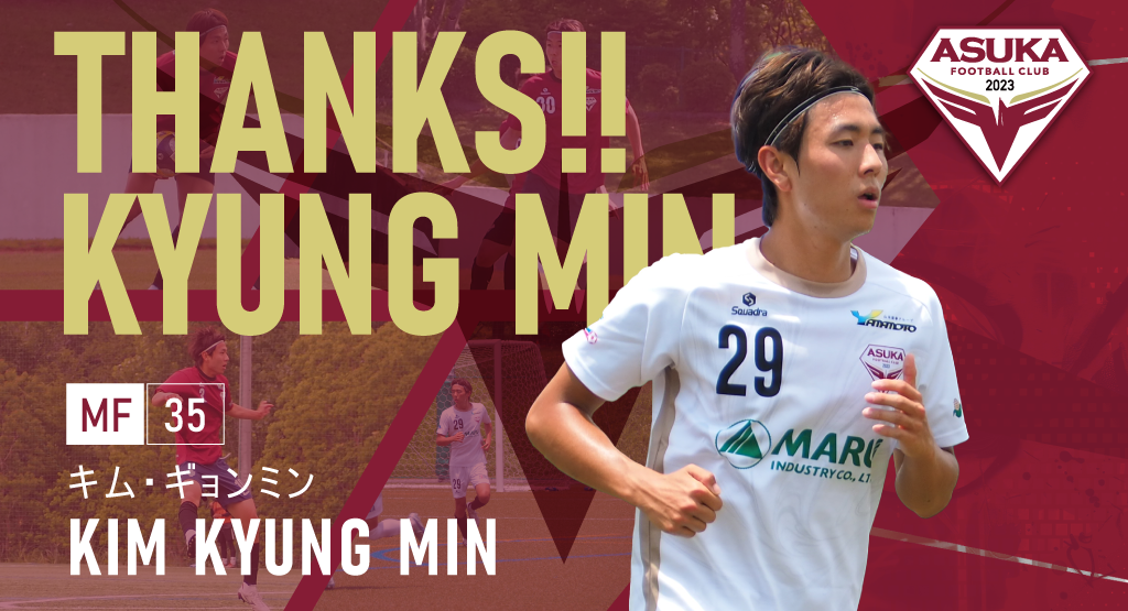 このたび、キム・ギョンミン選手が、2025シーズン限りで飛鳥FCを退団することとなりましたので、コメントと合わせてお知らせいたします。