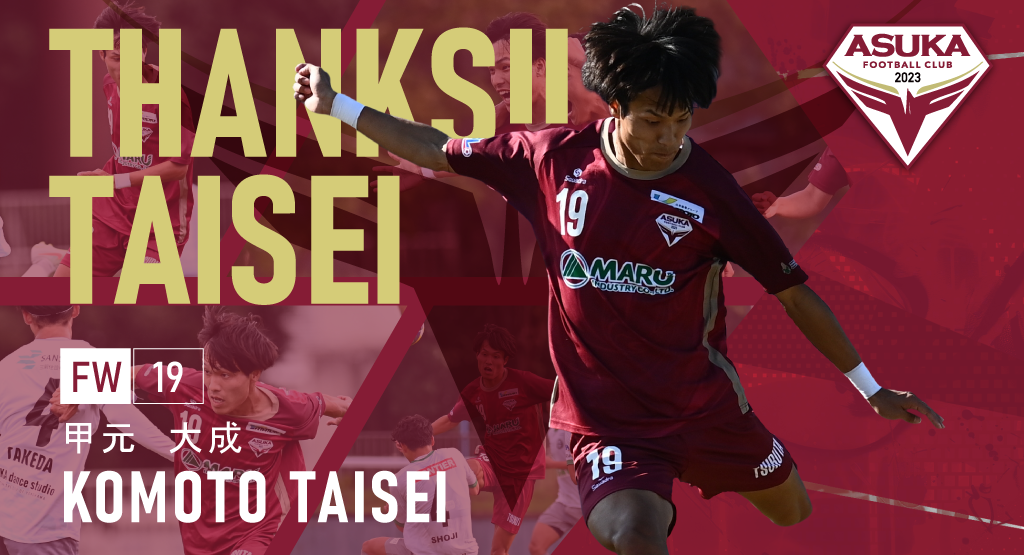 このたび、甲元大成 選手が、2025シーズン限りで飛鳥FCを退団することとなりましたので、コメントと合わせてお知らせいたします。