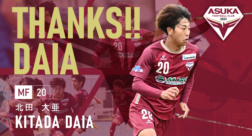 このたび、北田大亜 選手が、2025シーズン限りで飛鳥FCを退団することとなりましたので、コメントと合わせてお知らせいたします。