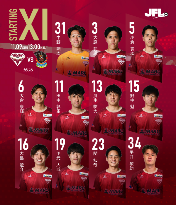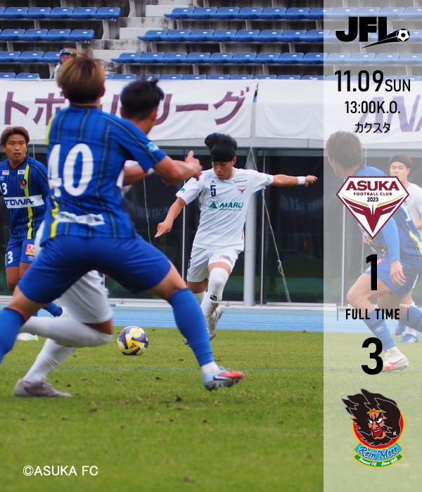 JFL第28節 VS.ラインメール青森FC 試合結果 試合結果 11.9(日)13:00 カクスタ 試合終了 飛鳥FC 44分 5 小倉 貫太 1-3 1 前半 10 後半 2 ラインメール青森FC 5分 5 高木 輝之57分 13 有田 光希90+2分 27 佐久間 駿希
